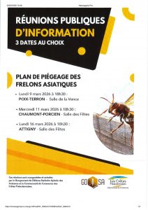 Pour continuer à lutter contre le fléau du frelon asiatique, nous vous proposons d’organiser à nouveau 3 réunions publiques à destination de vos habitants.